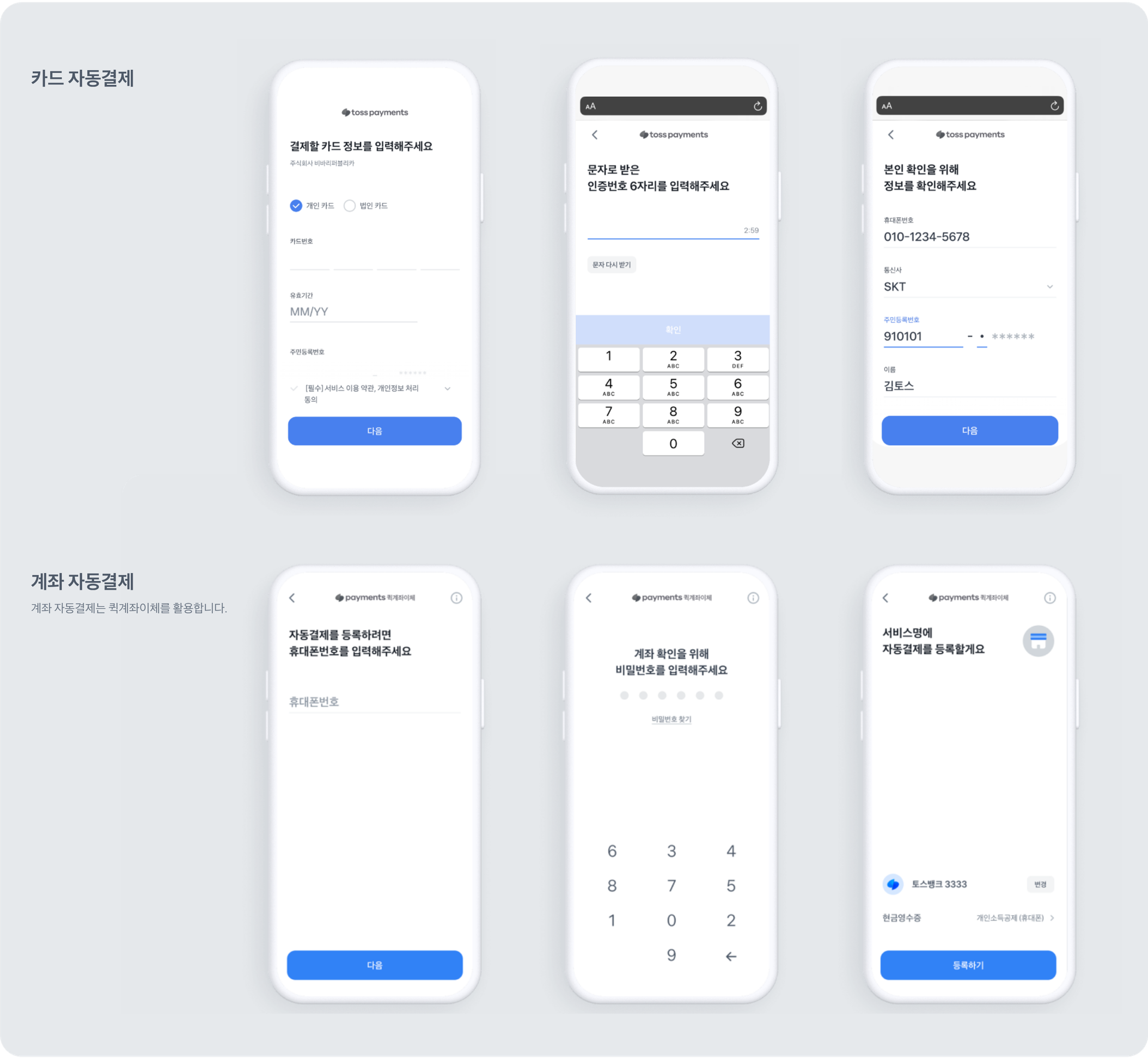 토스페이먼츠 SDK UI로 구매자의 카드·계좌 정보 수집 및 본인인증
