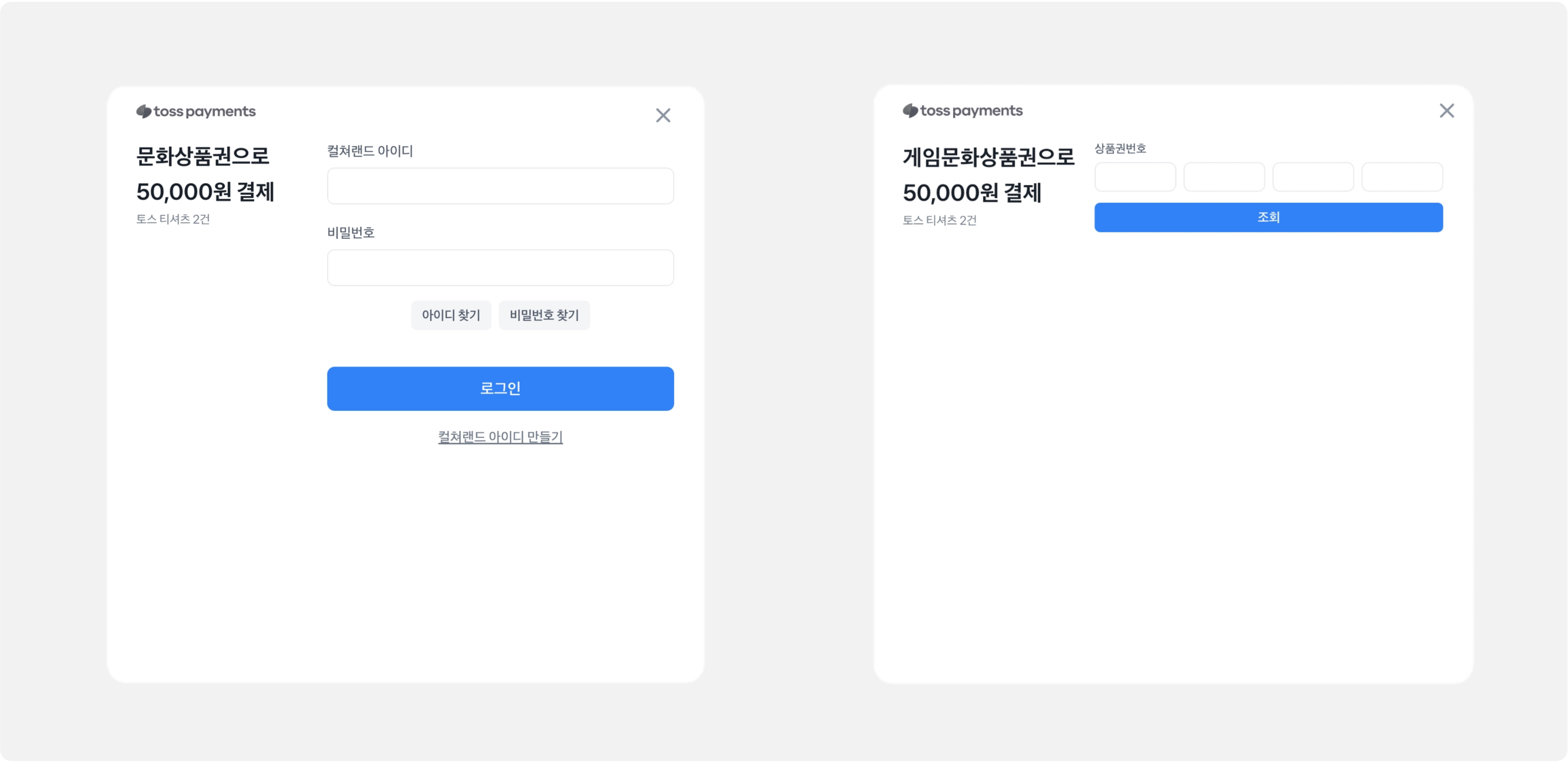 토스페이먼츠는 총 3종류의 상품권 결제를 지원해요. 백화점 상품권 등 다른 상품권은 지원하지 않아요.